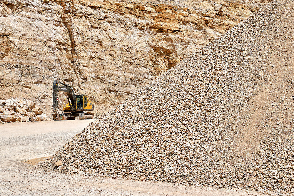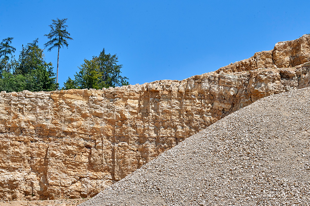 Im Steinbruch können Steinblöcke verschiedener Grössen bezogen werden. Auf Wunsch liefern wir die Steine mit Spezialfahrzeugen direkt auf die Baustelle. Sämtliche Kiesmaterialien wie Mergel, Planiekies und Splitter für den Waldweg- und Gartenbau werden direkt vor Ort aufbereitet.